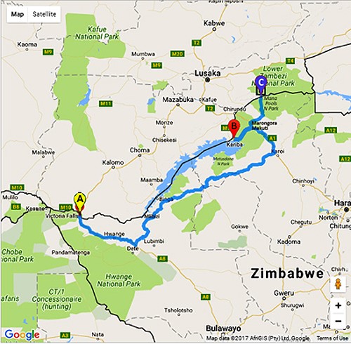 DISTANCE:  Victoria Falls – Kariba is roughly 770kms (480 miles); Vic Falls – Mana Pools, is about 800 kms (500 miles).